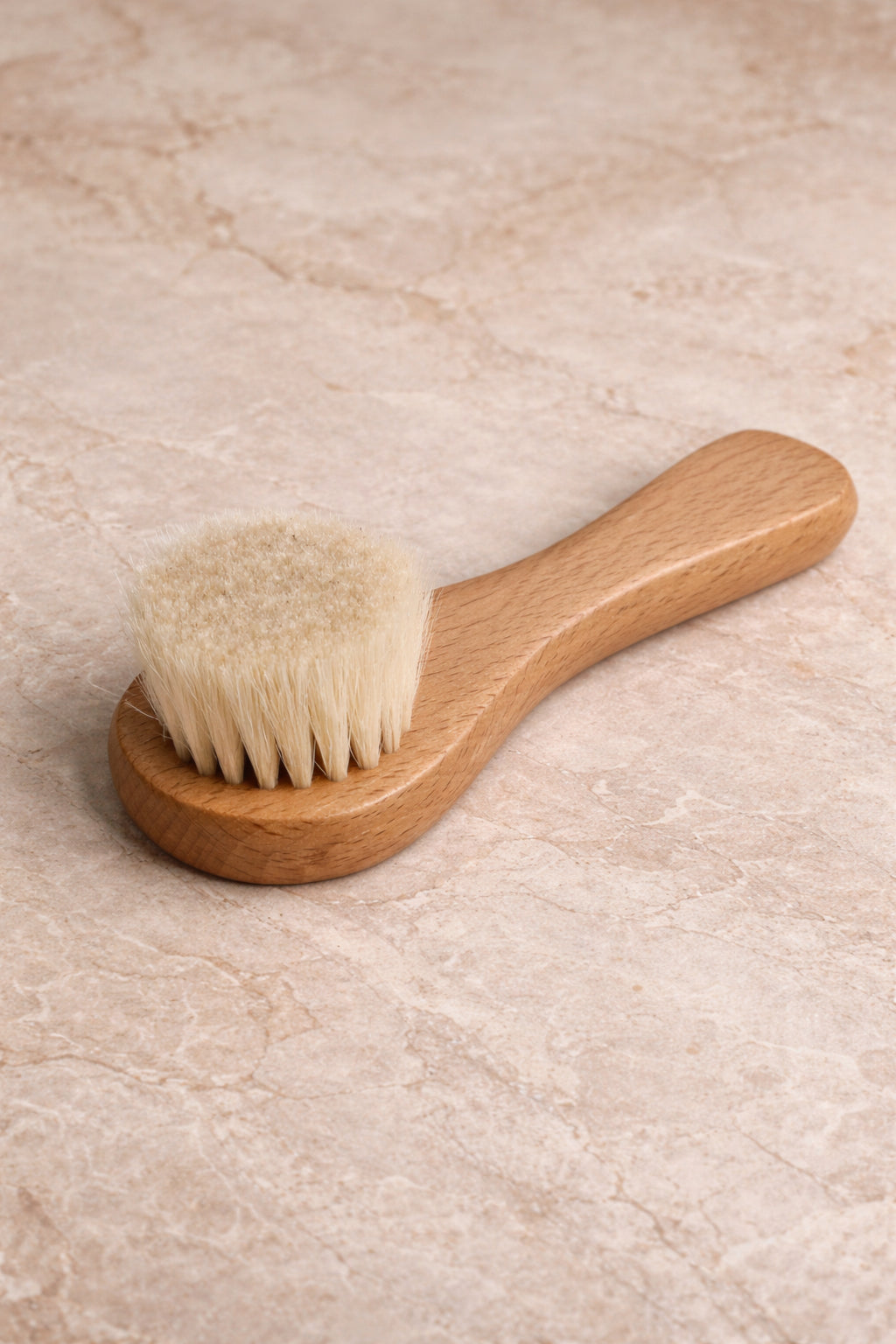 The first step in your skincare ritual. Though soft as a feather, this consciously made brush boosts circulation, encourages lymphatic flow, and gently clears away congestion and dead skin cells for a smoother, more radiant complexion. Designed for both aesthetic beauty and lasting quality.