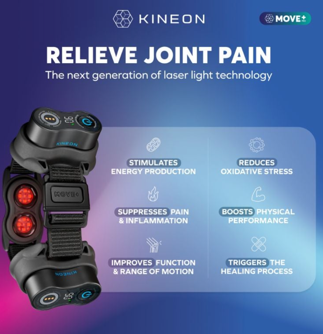 RED LIGHT LASER THERAPY, FOR LASTING RELIEF FROM CHRONIC PAIN. The next generation of targeted laser light technology, to help relieve chronic pain and stimulate recovery. The MOVE+ is a clinically backed red light therapy device that uses LED and laser technology to relieve joint pain, reduce inflammation, and improve mobility.